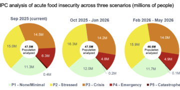 Sudan’s humanitarian emergency is worsening amid the country’s ongoing internal conflict, with devastating impacts on food security. The latest Integrated Food Security Phase Classification (IPC) analysis (November 3, 2025) shows that nearly half the population continues to confront high levels of acute food insecurity. Famine (IPC Phase 5) has been confirmed in the cities of El Fasher […]